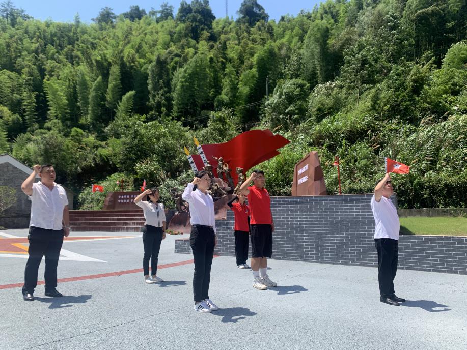 从旧址走出团队中的中国共产党党员在欧阳军华书记的带领下,面对党旗庄严宣誓,铿锵有力,掷地有声的誓言响彻浩山的每一个角落。
