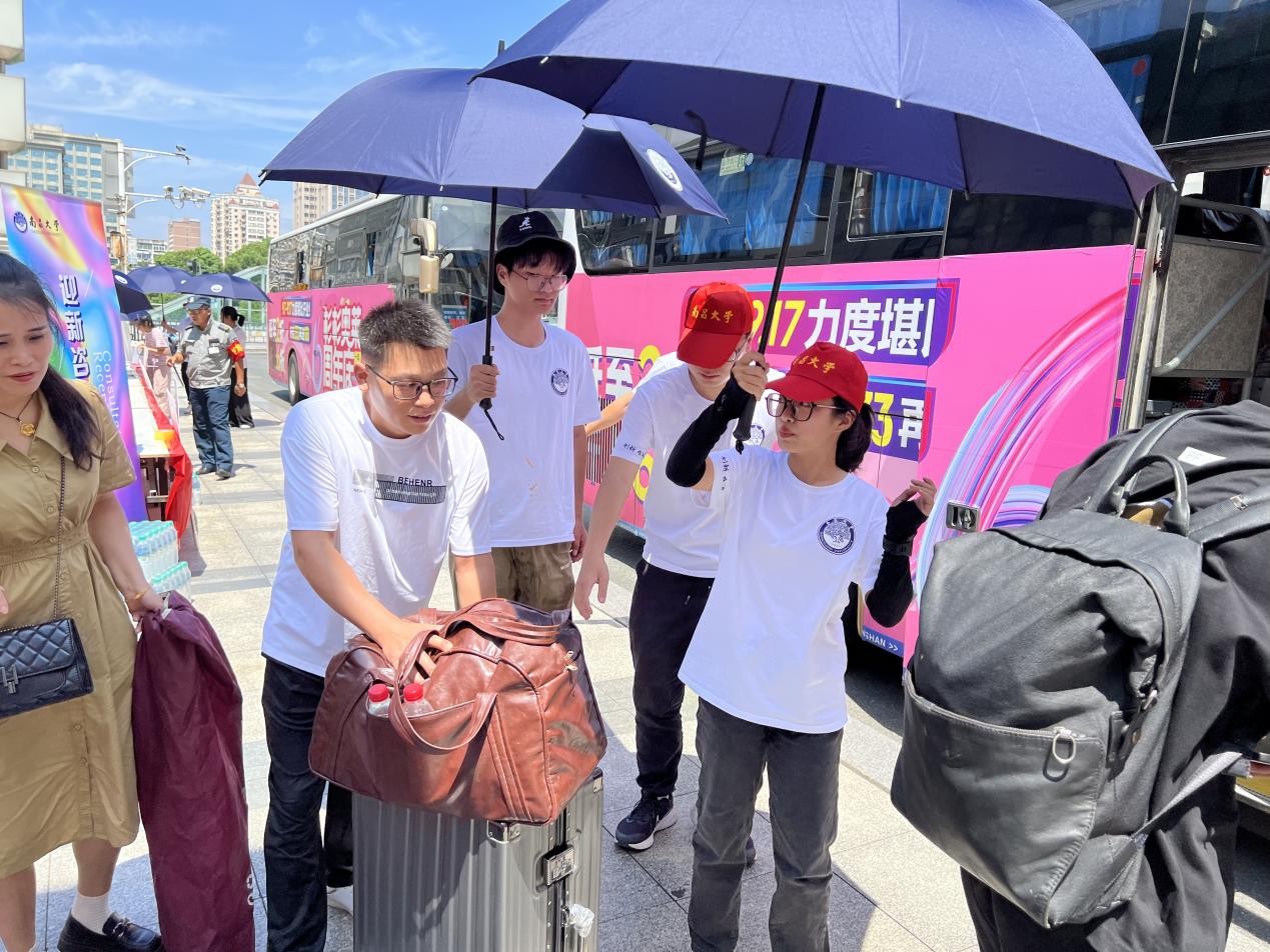 学院与校团委青年志愿者协会的志愿者,在南昌站共同迎接2023级新生的到来。新生们一到站下车,就会有志愿者上前迎接,提供力所能及的帮助。从出站口到新生接待站点,全程都有志愿者帮忙提行李、回答问题,绘声绘色地介绍美丽多彩的南大校园。