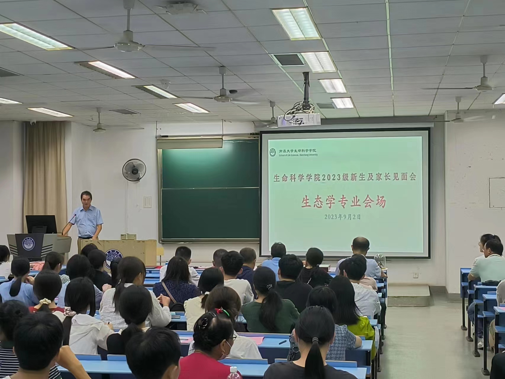 为帮助2023级生科学子尽快适应新环境,以饱满的状态投入到本科阶段的学习生活,9月2日晚上7点,学院在理生楼A101、 B106和环材楼B101分别举办各专业新生家长见面会。此次见面会共设有三个分会场,生态学专业分会场由生态系副主任邹志文老师主持,水产养殖专业分会场由院党委委员、水产科学系主任赵大显老师主持,生物科学专业分会场由生物技术系副主任王鑫老师主持。院领导及各系主任和老师出席会议,与家长们进行亲切交谈。