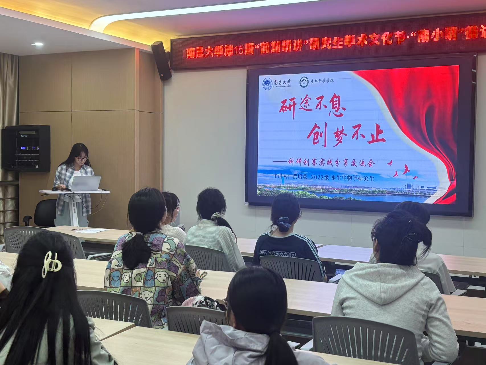 为帮助同学们更好地度过研究生生涯,提升参与科研创赛实践的能力,生命科学学院于2025年4月22日在理生楼A429成功举办了南昌大学第15届“前湖研讲”研究生学术文化节·“南小研”微讲堂(第181期)。本次讲座由24届研会主席邓倩主持,特别邀请了南昌大学2022级水生生物学硕士研究生黄培荧同学作为主讲人,吸引了线上线下众多学生的积极参与。