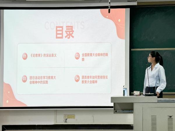 通过本次活动,我们旨在引导党员和团员深刻领会全国教育大会精神,增强政治觉悟,弘扬党员精神,为新时代中国特色社会主义事业的发展奋进,也为团组织的壮大和发展提供了强大的动力。本次活动让我们更加明白,聚焦初心使命深化学习认识、聚焦入脑入心内化学习要义、聚焦改革落实转化学习效能;要站在强国建设、民族复兴的战略全局高度,坚守为党育人、为国育才的初心使命,引导干部师生深刻认识习近平同志《论教育》的重大意义与核心要义,将学习成效转化为服务国家和学校事业高质量发展的生动实践。