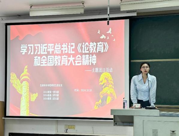 为激发党员青年的学习热情,提高政治觉悟,增强团组织的凝聚力,“挺膺担当,强国有我—学习习近平总书记《论教育》和全国教育大会精神”特别主题团日活动于2024年10月18日在生命科学学院研究生2024级第一团支部顺利开展。