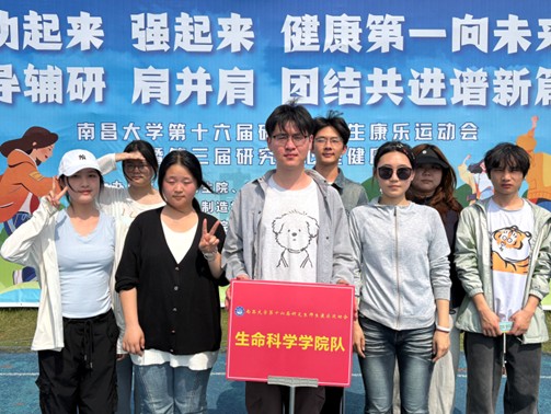2026年4月18日,南昌大学第十六届研究生师生康乐运动会在前湖校区顺利举行。本次运动会由党委研究生工作部、南昌大学研究生会主办,先进制造学院承办,吸引了全校各研究生培养单位及课题组队伍的广泛参与。生命科学学院共派出18支队伍共计225名师生参赛,凭借出色的组织能力和团队协作精神,荣获本届运动会“优秀组织奖”。