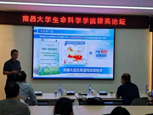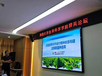 On March 28, 2026, the third session of the 2026 Elite Forum, part of the 86th-anniversary lecture series of NCU School of Life Sciences, was held in Room A429 of the Science and Life Sciences Building at the Qianhu Campus. Moderated by Professor Dong Wang, Deputy Dean of the School of Life Sciences, the forum convened faculty members specializing in relevant fields alongside undergraduate and graduate student representatives. The keynote speaker was Dr. Zhenyu Wang, a Research Fellow at Institute of Nanfan and seed Industry, Guangdong Academy of Sciences. Dr Wang delivered an academic report titled "Construction of a Molecular Designed Breeding System for Drought Resistance in Soybean and the Development of New Varieties."