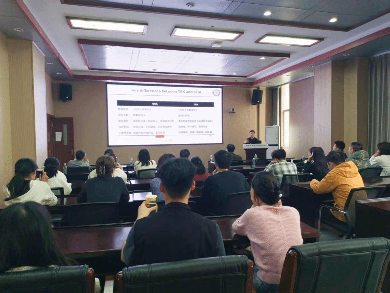 Professor Zhang has dedicated extensive research to the immunological mechanisms underlying persistent vascular inflammation in large-vessel vasculitis. In his report, he elucidated the core finding that adventitial fibroblasts induce the formation of tissue-resident memory T cells (TRM) via the NAMPT/NAD⁺ axis, thereby driving sustained vascular inflammation and neovascularization. He provided an in-depth analysis of how the positive feedback loop between T cells and fibroblasts impedes the resolution of local inflammation. Furthermore, he proposed novel therapeutic strategies for refractory large-vessel vasculitis by targeting the CD38 enzyme or the JAK/STAT signaling pathway. Addressing practical challenges such as low clinical response rates and persistent local inflammation, Professor Zhang systematically presented research achievements spanning from basic immunology to translational applications. His presentation integrated cutting-edge mechanisms—including the PD-1/PD-L1 pathway, NAMPT metabolic checkpoints, TRM cell differentiation, and GM-CSF-mediated angiogenesis—as thematic threads to deliver a compelling academic discourse.